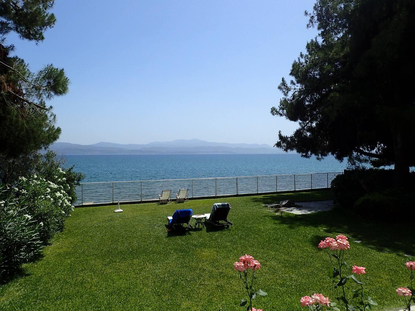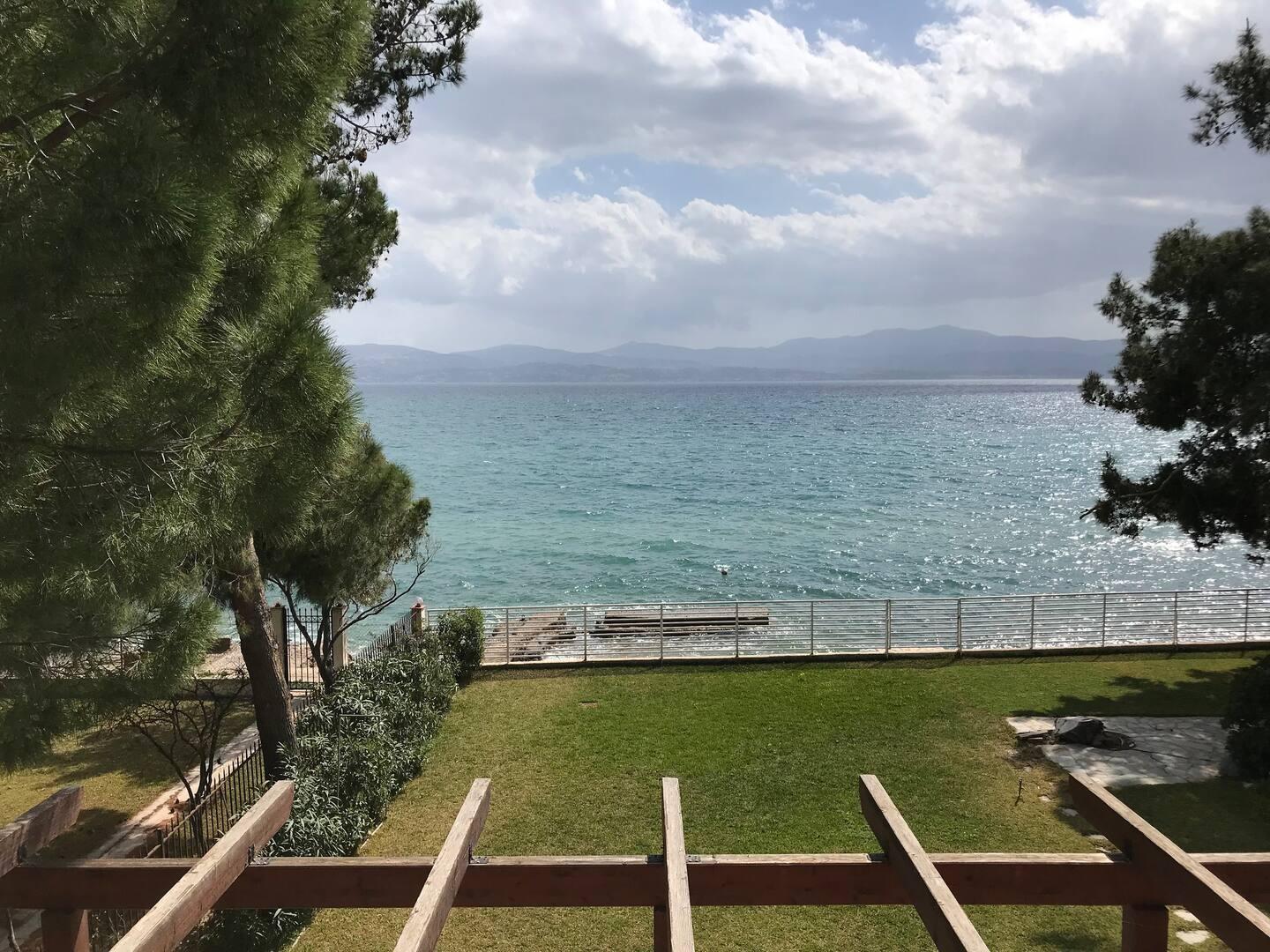 Two floor house literally on the sea, with garden and private parking. A beach just right in front of the garden.