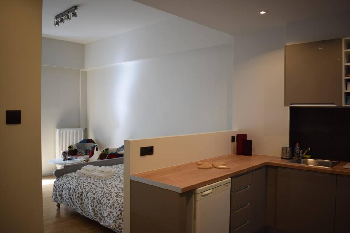 This studio is newly renovated and refurbished and despite of the fact that it is compact would make one feel immediately at home. It has everything! A spacious bedroom/living room with a comfy bed which overlooks the marvelous garden and picturesque pedestrian street below, a modern and fully equipped kitchen, a luxurious and spacious bathroom, closet and mostly the hill of Lycabetus which overstands as one of the Athenian landmarks. The hill is just a breath away from the house and guests can enjoy the magnificent views of Athens and the greenery as well as the concerts and theatrical performances that take place there during the summer.