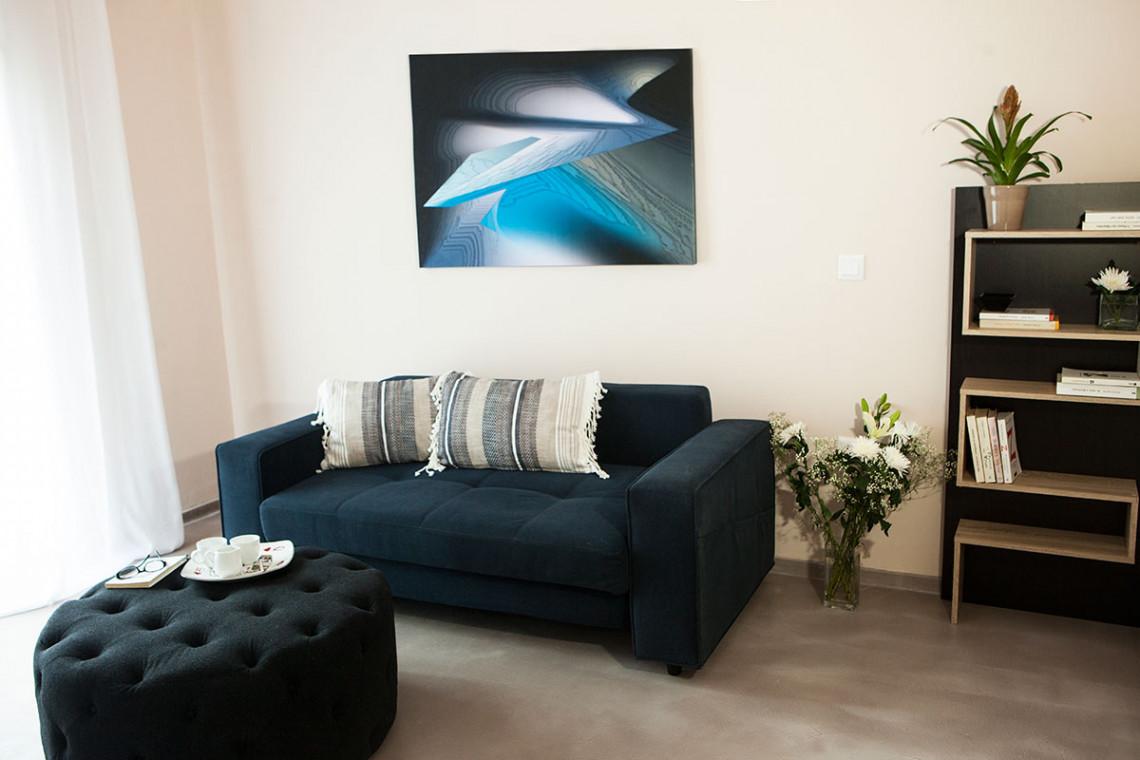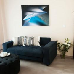 A fully renovated sunny 1st floor apartment close to Piraeus port. The apartment is located in a quiet street of Piraeus providing a convenient accommodation in a well-equipped modern apartment. A couple in the main bedroom and two adults or two kids at the second bedroom with the big sofa-bed can be hosted comfortably.